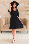 The dreamiest of dresses has just arrived! The Harlo is the perfect little black dress for any occassion! Our classic black dresses always sell out fast so be sure to add to cart now! Features include, half length ruffled puff sleeves, double banded smocked waistline and flowy mid-length ruffled hem skirt. We know you're going to love it!