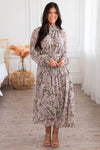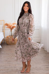 If you have been on search for the perfect dress, we have the one for you! Our new, modest, Harriette dress, is so feminine and beautiful. Featuring a lovely dainty dusty pink print, a modest high smocked neckline, long smock cuffed sleeves, a belt tie waistline and flowy tiered skirt. It is a must add to cart kind of dress!