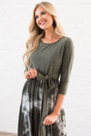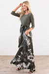The Haydee is here and we can hardly hold back out excitement! We love the feminine style and flowy ruffle hemline tie dye maxi skirt! Also featuring a modest round neckline, fitted 3/4 length sleeves, elastic waist with tie detail and pockets. Get yours today!