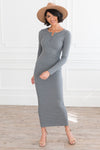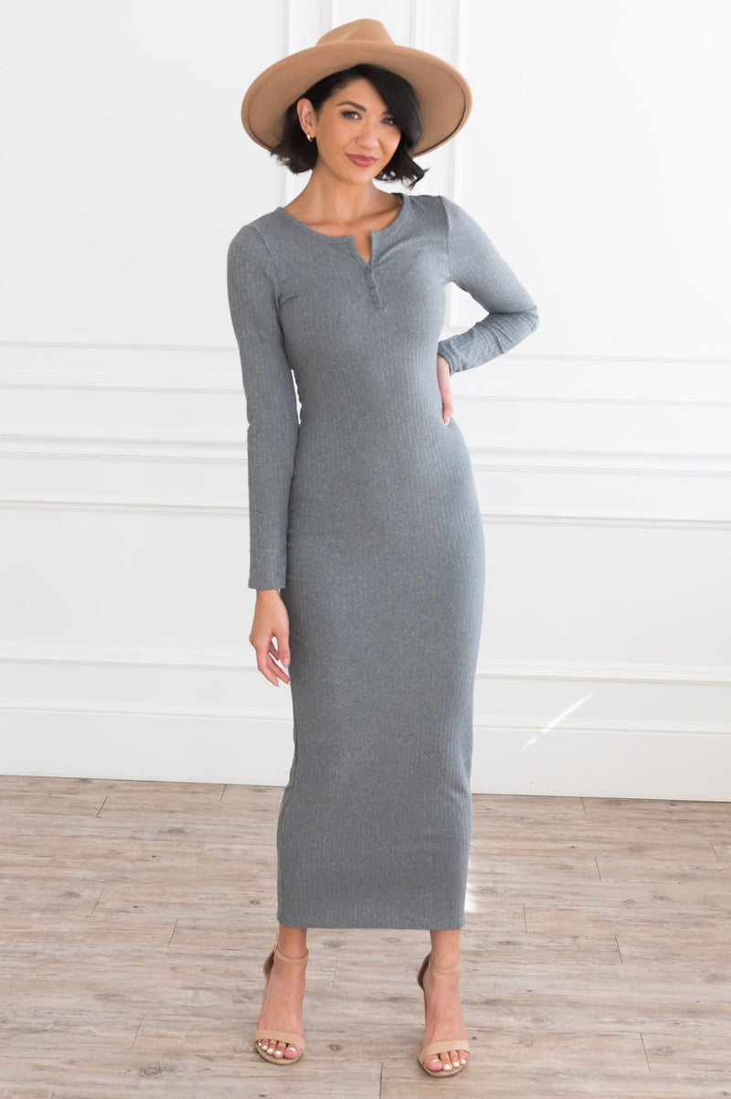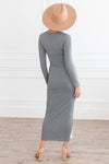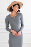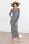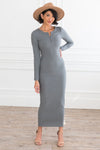 Say hello to our new Hollyn dress! This dress is so dreamy it is hard to resist. This dress features; fitted maxi style, long sleeves, ribbed material, round neckline with delicate soft V opening and 3 cute buttons. This is so versatile you can dress it up with a cardigan and scarf or keep it simple. Either way its a win win! Get yours today!
