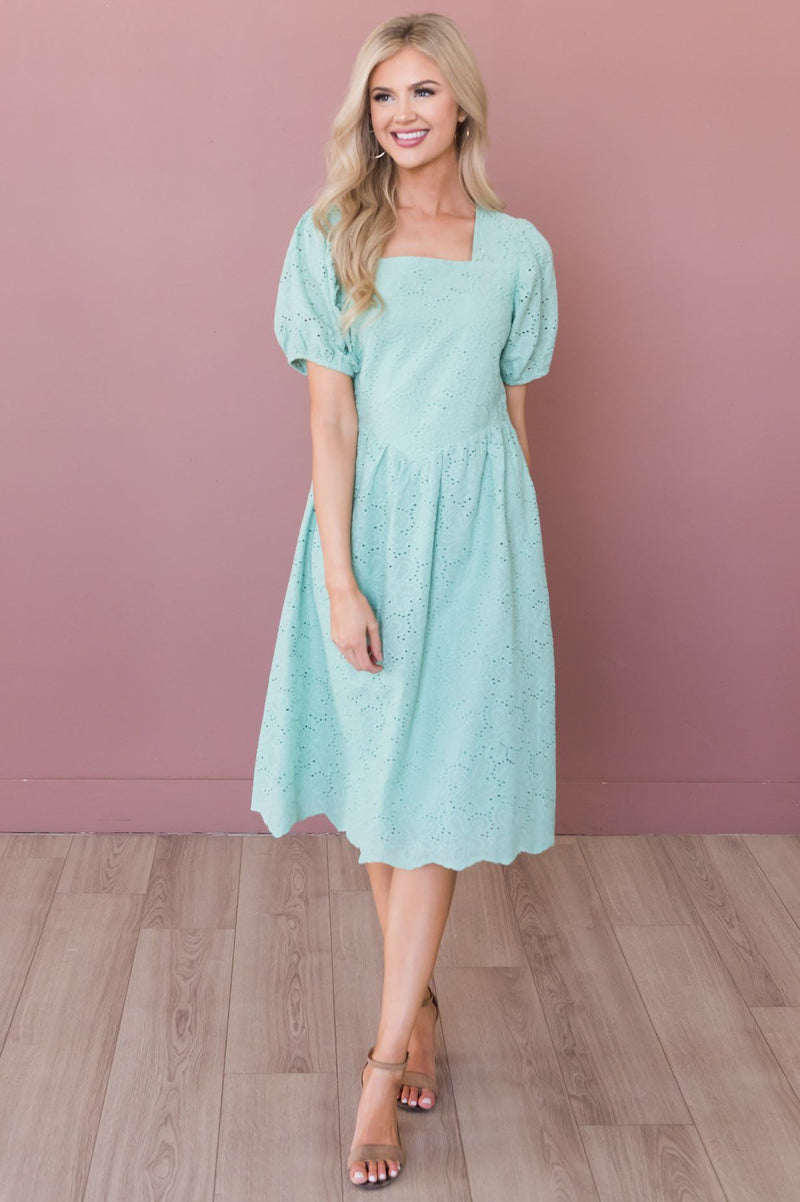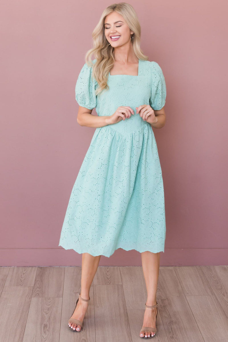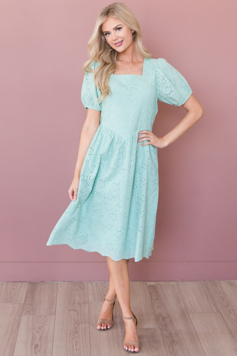 This charming dress is one of our new favorites! These fabulous puff sleeves will have anyone in awe! The eyelet floral material, square neckline, and yoked skirt make for a piece you don't want to miss out on this season!