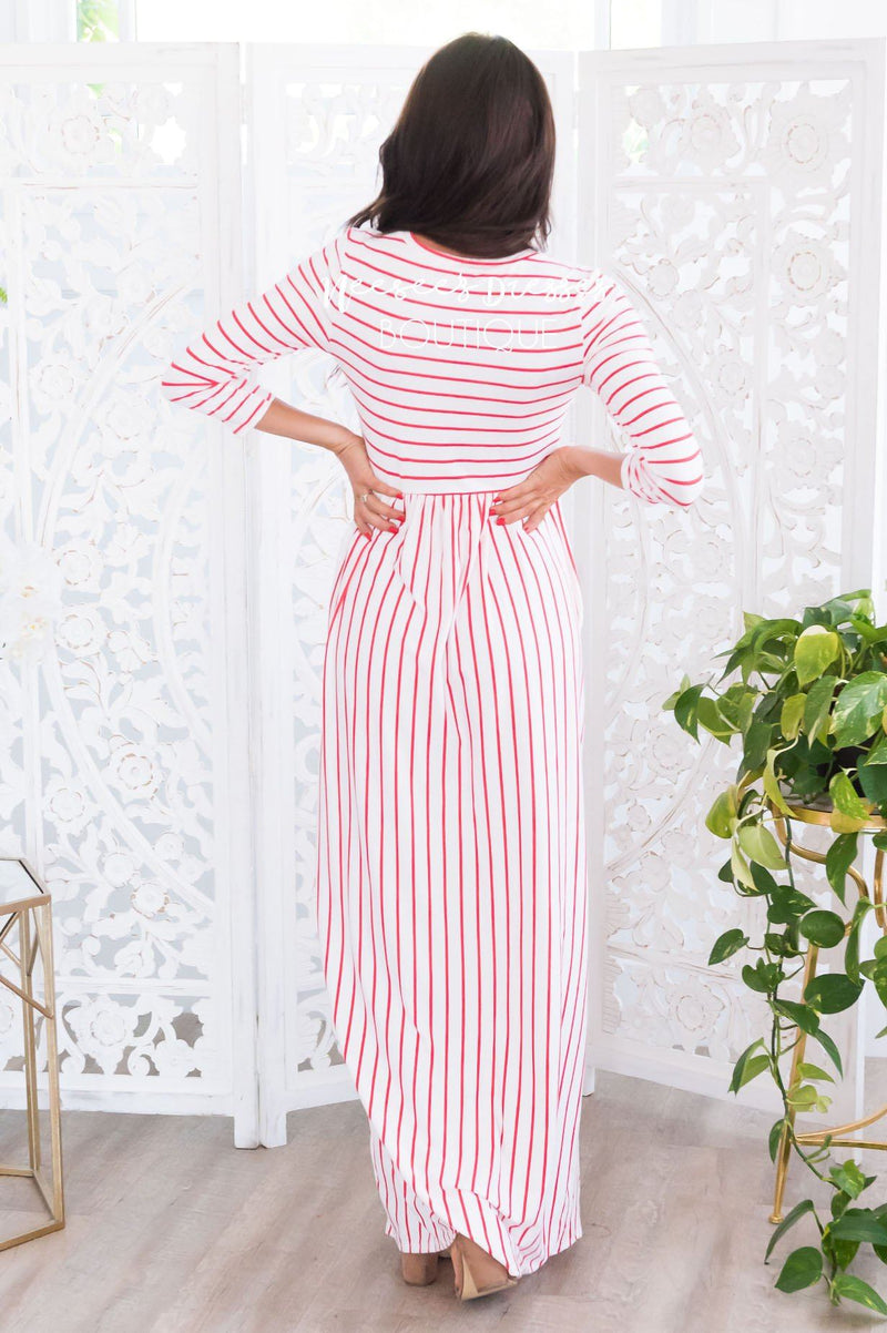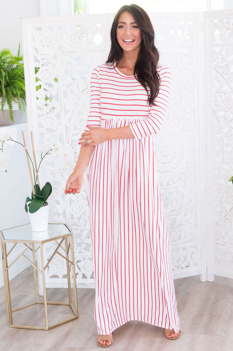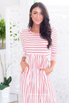 The Ivy is the perfect maxi for everyday wear, we can not get over these cute yet classy stripes! We love the round neckline, 3/4 length sleeves and elastic waist! Bonus, this beauty has pockets too!