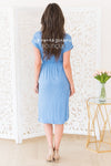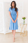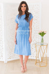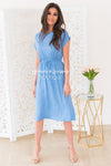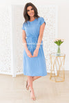 Perfect comfy cozy classy shirt dress. Featuring rounded neckline, short cuffed sleeves, front pocket, elastic drawstring waist, and darling modest hemline slits. Get yours today!