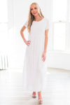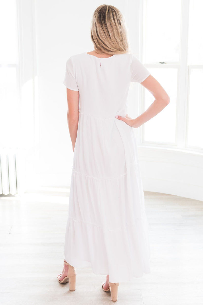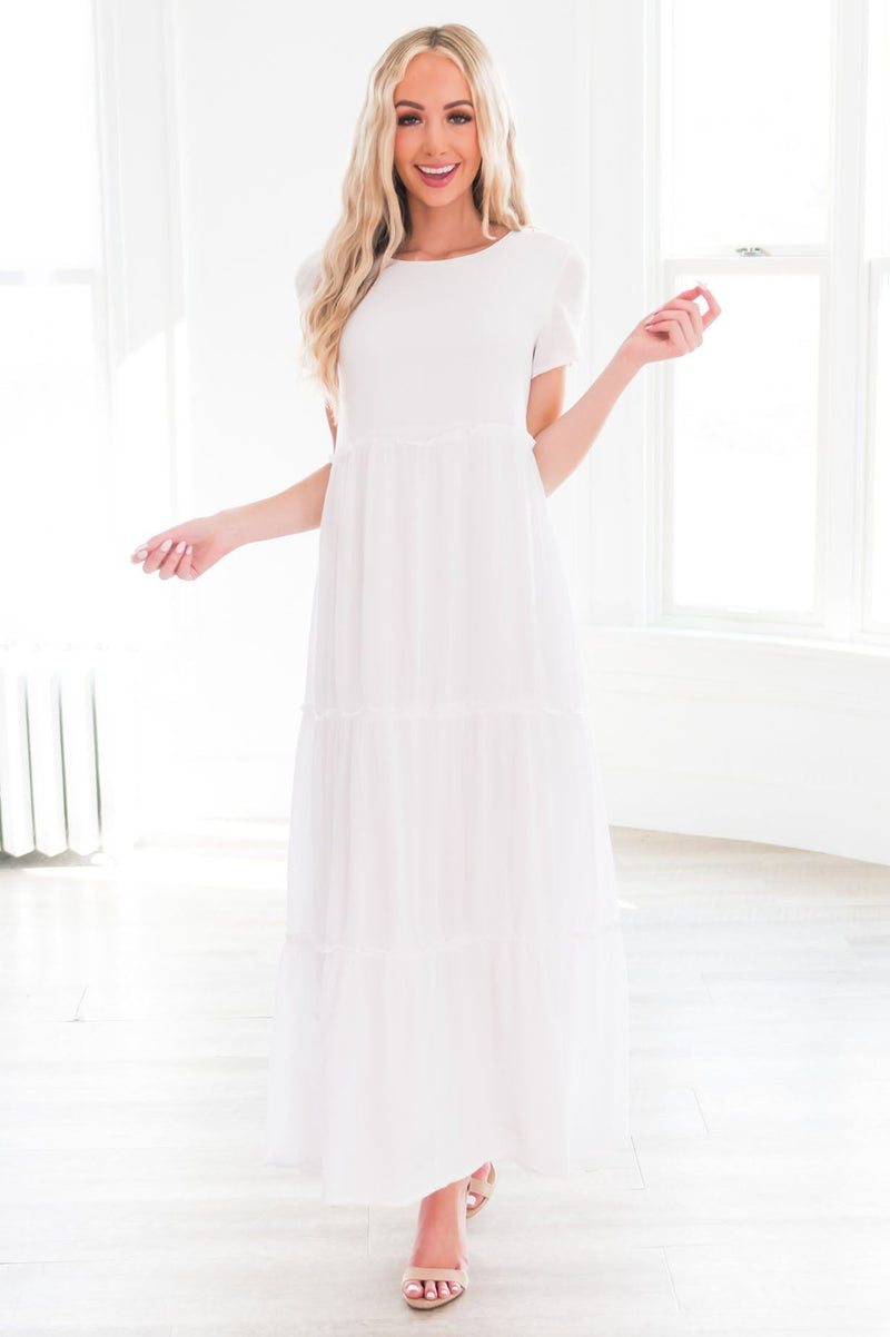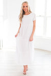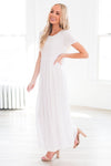 We are loving the gorgeous color and perfectly placed tiered skirt you get when you get the new James maxi dress! Also features short flutter sleeves and is fully lined! This one is a true must have!