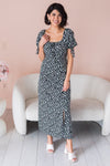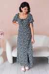 Our new Jamie dress is absolutely stunning in every way! This dress features lovely short puff sleeves with delicate tie detail, modest round neckline with tie detail, flattering fit and long skirt with modest side slit. This drees is so classy and elegant you will instantly fall in love with it!