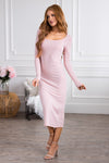 Our new darling Jane textured maxi dress, is truly stunning. Featuring flattering ribbed fabric pencil fit, modest scoop neckline, long sleeves and perfect length skirt. The lovely lilac color will sell out fast so be sure to add to cart now!