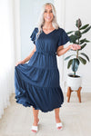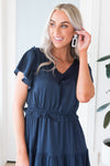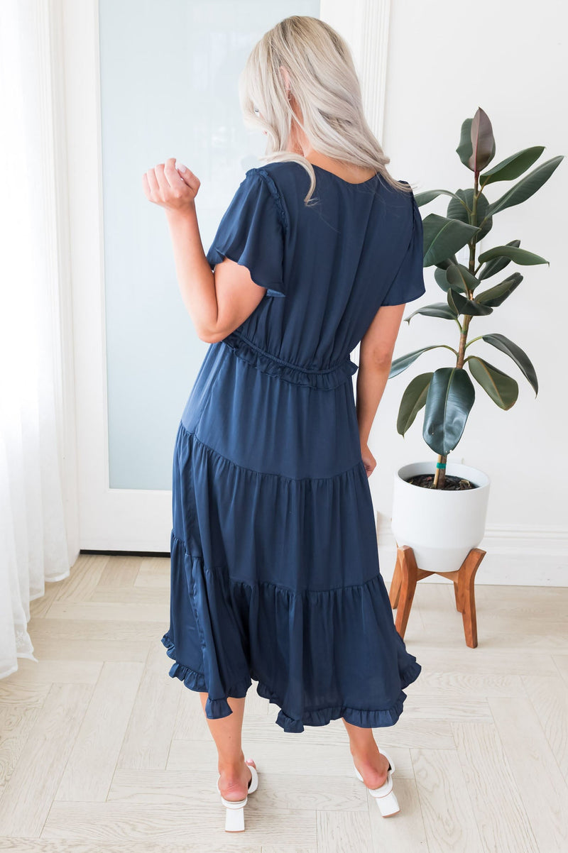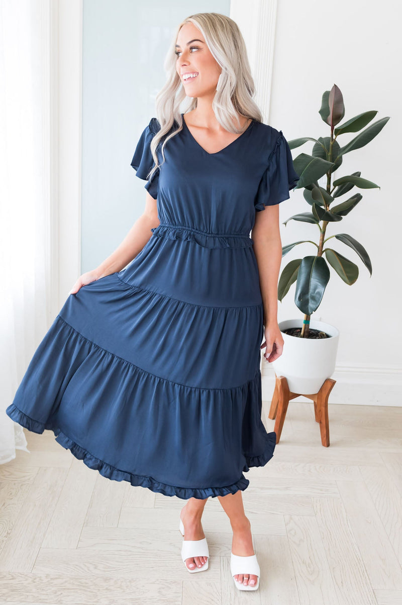 Get the lovely Janella today! The lovely satin material is so feminine and soft! Accompanied by the beautiful tiered skirt, short flutter sleeves and soft v-neck. This dress is a summertime must have!