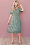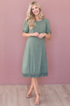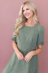 The most gorgeous ruffled polka dot beauty just went live on our site! We are obsessed with all the darling details in the new Jaspel! Features include, modest round neckline, short ruffle detailed sleeves and the perfect length skirt with ruffle hemline detailing!