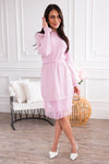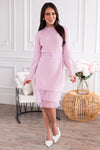 Our new Jay dress is here to blow you away! We adore the classic belted sweater dress style, paired with the sheer ruffled detailing on the skirt! You can pair this with your favorite skirt extender, leggings, boots you name it. This gorgeous dress a true must have! Get yours today!