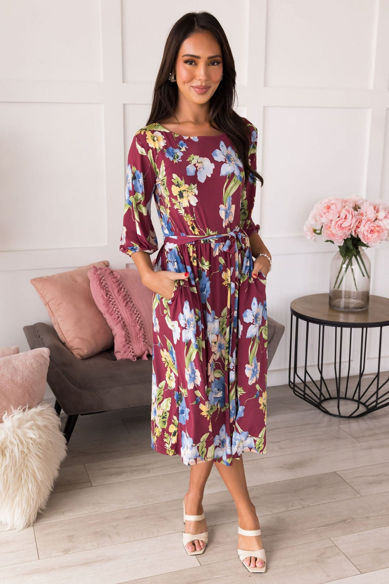 This perfect little floral has swooped in and stolen our hearts! Just imagine pairing this beauty with your favorite hat and booties! Featuring quarter length sleeves, belt tie waistline, pockets, slip on style and perfect length skirt. This is a must have, add to cart now!