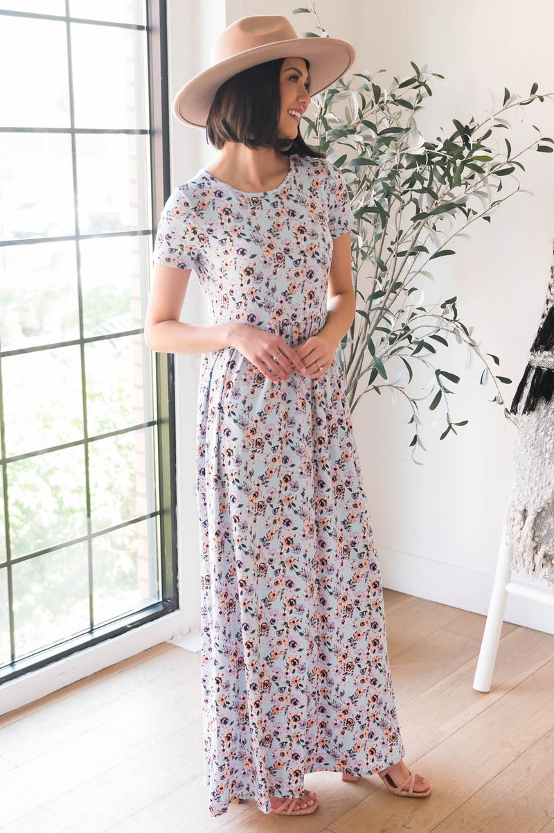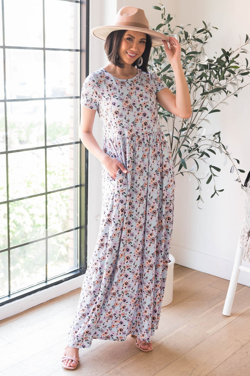 We love to share our love for floral maxi dresses with all of you! That's why we our giving the gift of maxi floral galore. This beauty features gorgeous floral, short sleeves, round modest neckline, and of course pockets, don't forget the most softest material EVER!