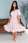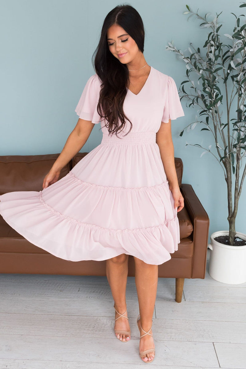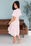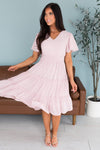 The gorgeous feminine Jemma has stolen the show! We are loving the lovely blush pink color, short flutter sleeves, soft v-neckline, smocked waistline and flowy tiered skirt. Get yours today, these beauties will go fast!
