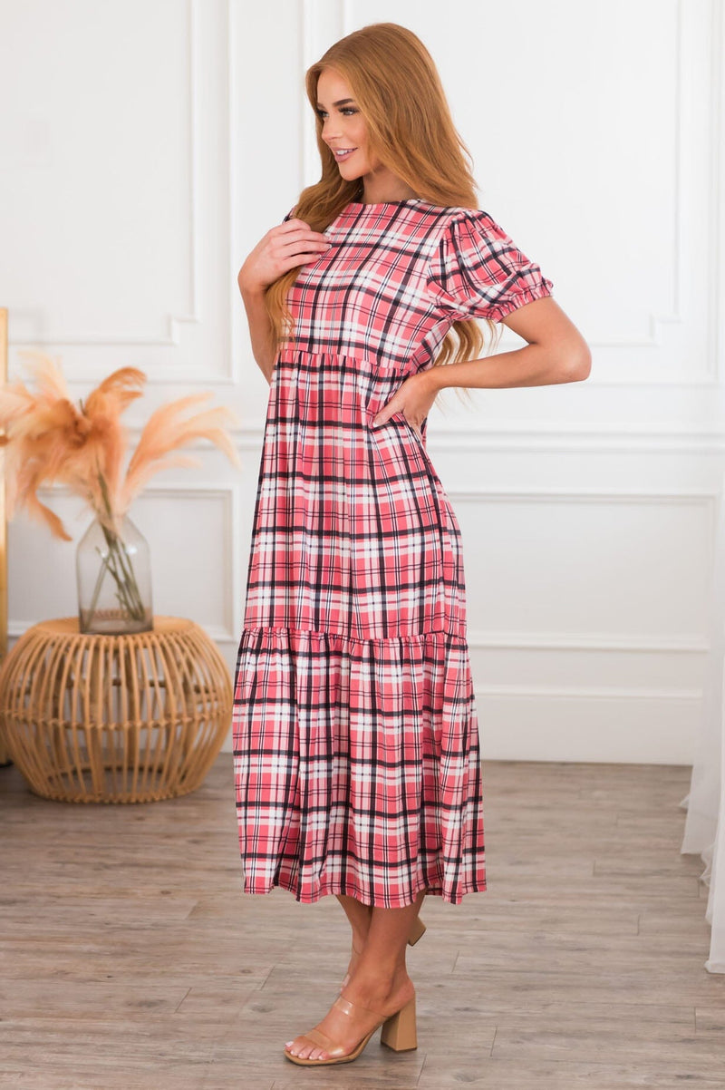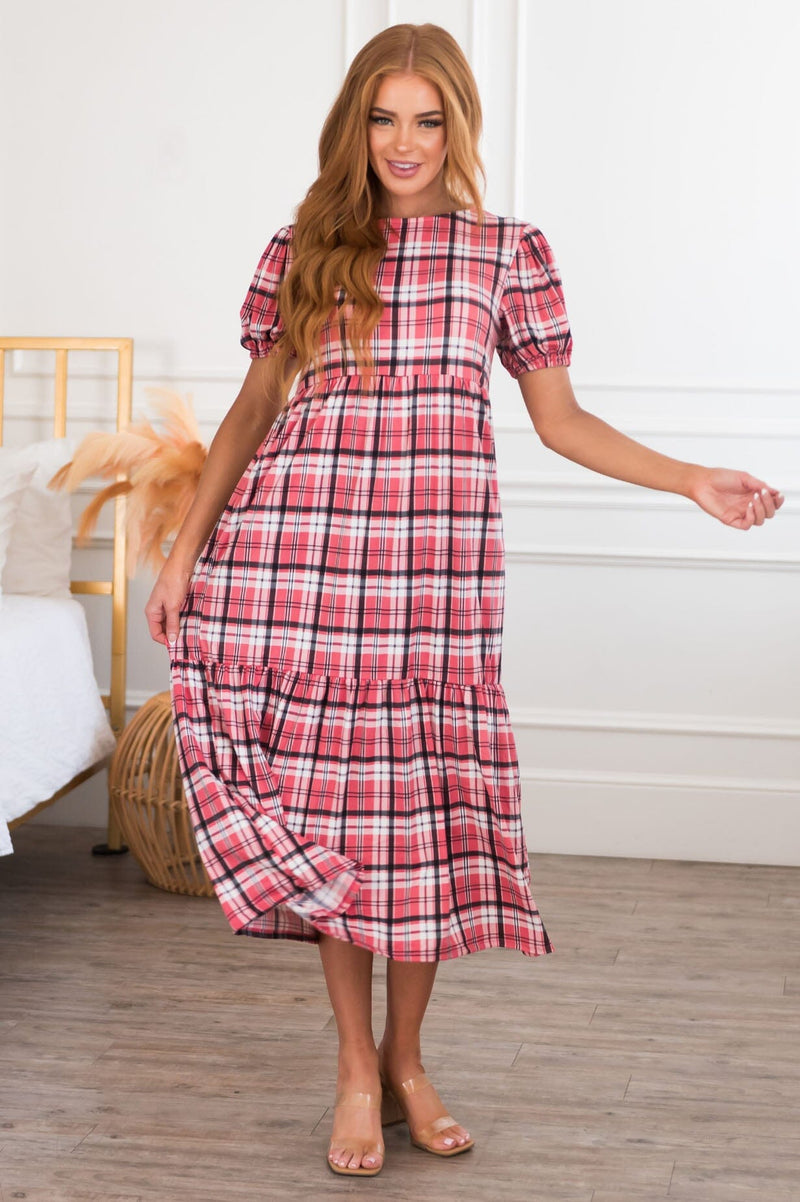 The new Jennica is the absolute perfect plaid dress! We are loving the ivory, black & pink color combination! The gorgeous features of this dress also include adorable short puff sleeves, empire waistline and the perfect length ruffle hem skirt. Get yours today!