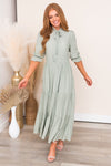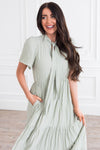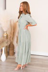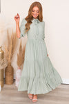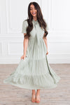 Another classy maxi dress is here to take your breath away! We are obsessed with the gorgeous vintage crimp fabric effect on this beauty! This dress features a bow tie neckline, short flutter sleeves and a full flowy tiered skirt. This is going to be perfect for any occasion you have coming up in your life!