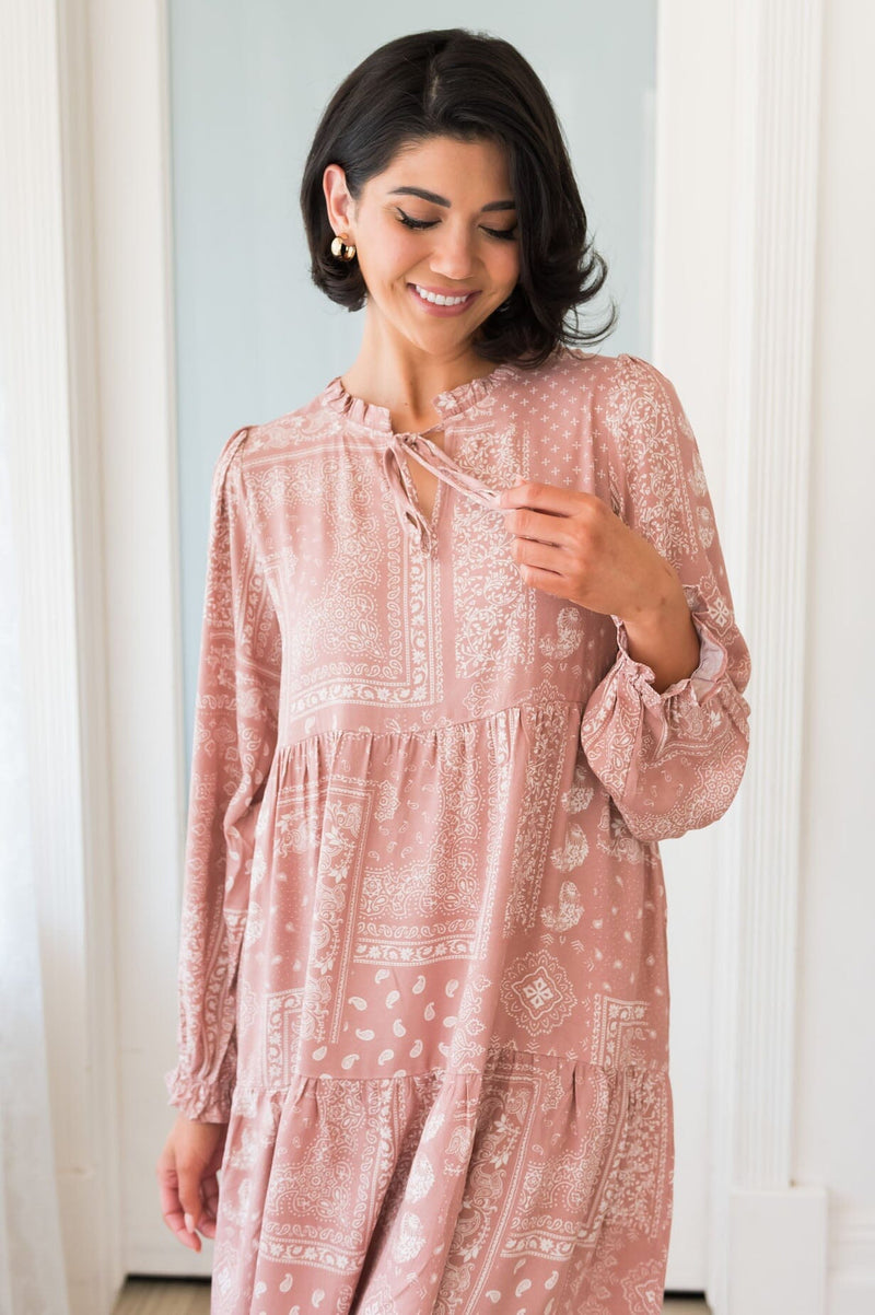 We have the perfect dress right here! The darling Jessa is bound to be a hit! Featuring long sleeves, modest tie neckline with ruffled detailing & a gorgeous ruffled flowy tiered skirt. This one is must have, get yours today!