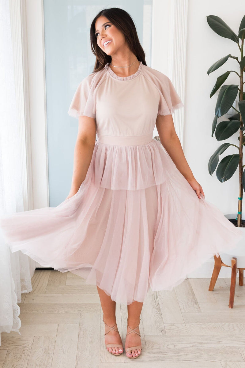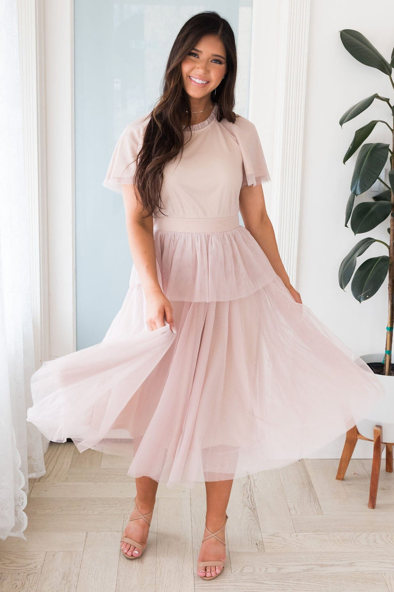 We had to pinch ourselves to make sure we weren't dreaming when we found the new gorgeous Clara! This tulle beauty, is a true must have! Can you say *perfect* dress?! Featuring a ruffled neckline, perfect fit bodice, short flutter sleeves, the absolute perfect flowy double ruffle skirt. Get yours today!