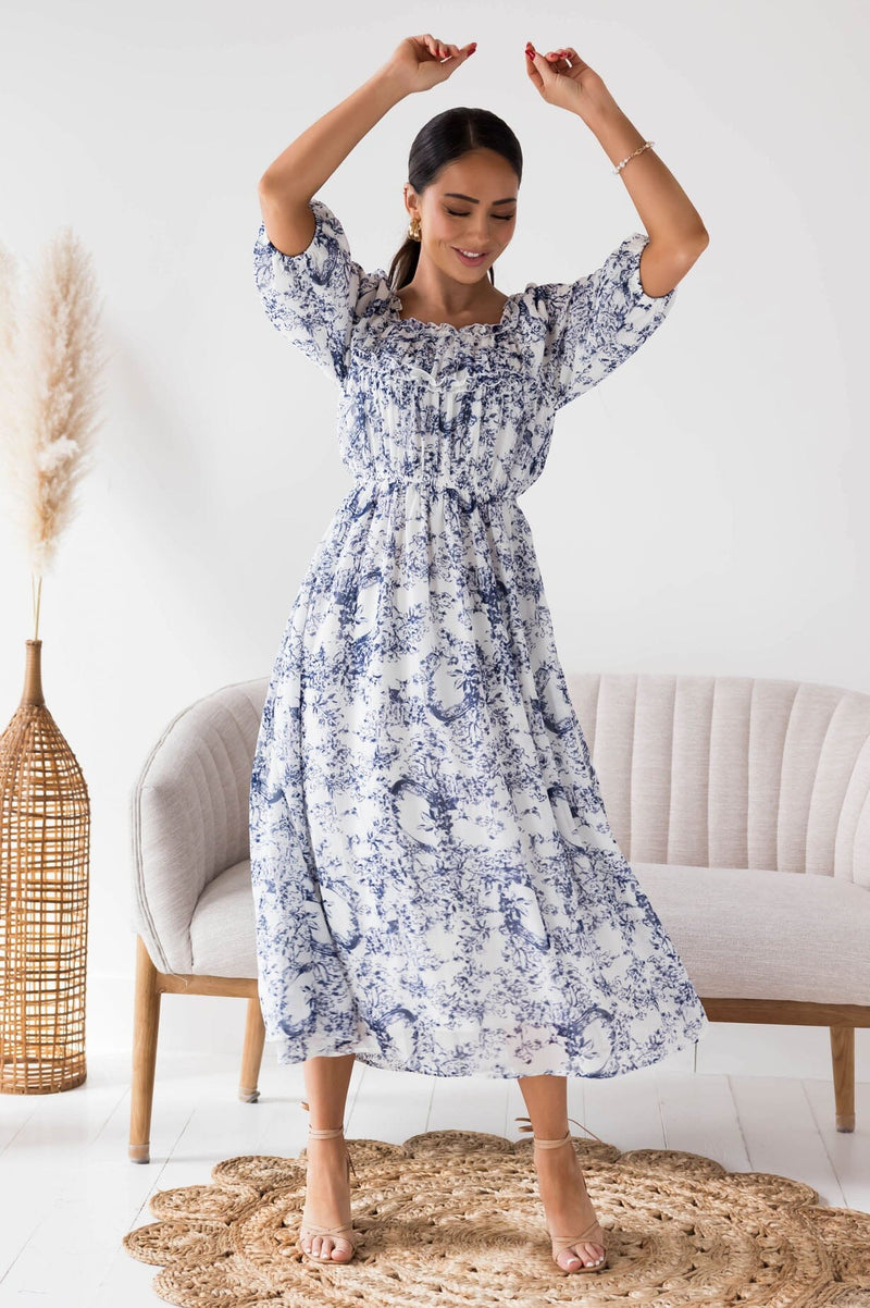 The gorgeous little Jilayne is bound to steal your heart! The lovely ruffled bodice with feminine flowy fabric it is so eye catching and classy! This dress is perfect for Summer! Featuring half length sleeves, elastic waistline, and perfect length skirt. Get this elegant beauty today!