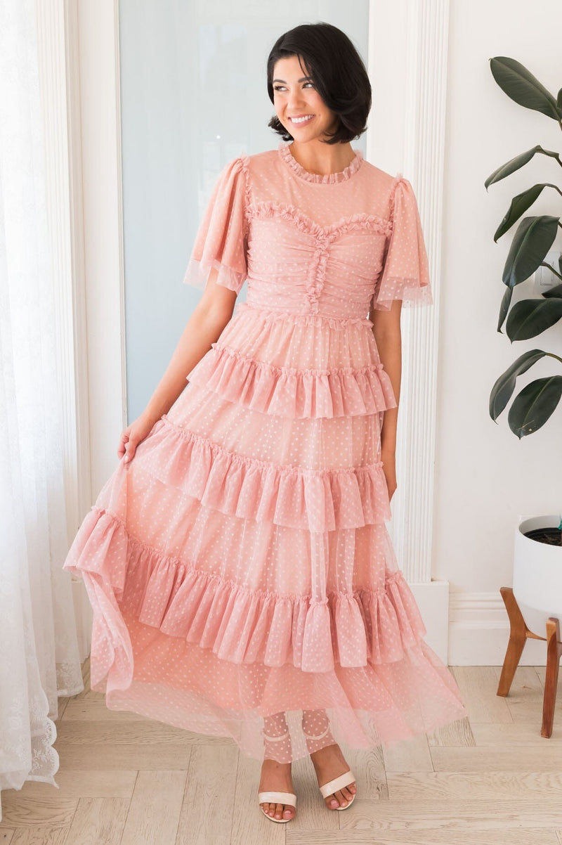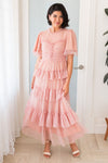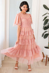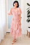 The newest tulle stunner has arrived and we are obsessed! This dress is the perfect special occasion dress, bridesmaid dress, you name it, you will make an impression the second you put this dress on! Featuring a ruffle gathered sweetheart bodice, short flutter sleeves and perfect length ruffled maxi skirt.