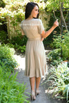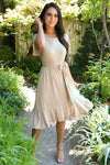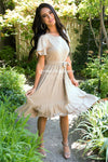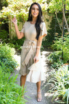 Our absolute new favorite! The Joan is perfection, this gorgeous mid-length dress features a modest round neckline, short cross flutter sleeves, cozy soft stretch material, belt tie waist and last but not least the darling faux wrap skirt! These will go quick, get yours before they are gone!