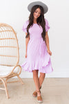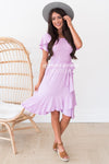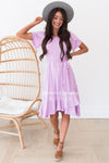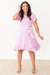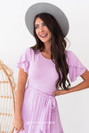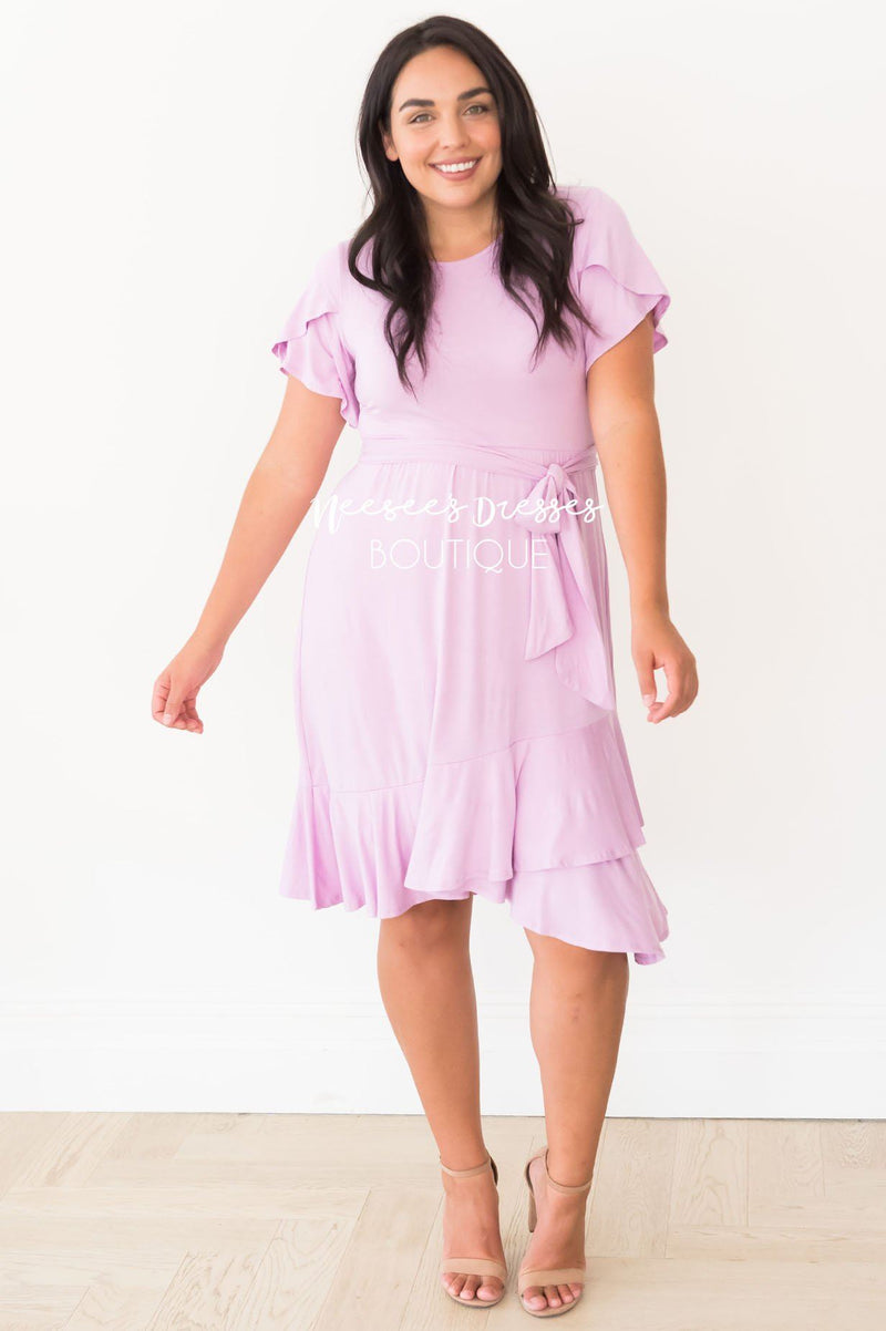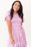 Our absolute new favorite! The Joan is perfection, this gorgeous mid-length dress features a modest round neckline, short cross flutter sleeves, cozy soft stretch material, belt tie waist and last but not least the darling faux wrap skirt! These will go quick, get yours before they are gone!