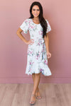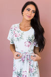 Our absolute new favorite! The Joan is perfection, this gorgeous mid-length dress features a modest round neckline, short cross flutter sleeves, cozy soft stretch material, belt tie waist and last but not least the darling faux wrap skirt! These will go quick, get yours before they are gone!