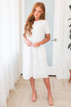 Summer is here and the Jorlyn is the perfect dress for it! Grab this lovely crochet floral embroidered dress for all your upcoming special events! Featuring a modest round neckline, short sleeves, keyhole button back closure and a flattering shift style.