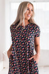 We cannot get enough of modest swing dresses! Especially ones with gorgeous floral and pockets! This cute swing dress features; shorts sleeves, round modest neckline, pockets, buttery soft material, the perfect midi length. These beauties are going to fly out of our boutique faster than they came in so be sure to snag yours!