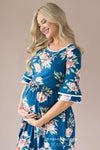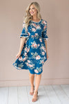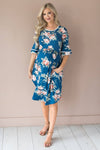 The Josslee is one of our new favorites! This classy feminine mid-length dress is sure to flatter! Featuring a ivory trim round neckline and flowy double bell half sleeves, elastic waist and pockets! You simply can not go wrong with this beauty!