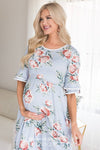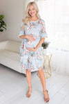 The Josslee is one of our new favorites! This classy feminine mid-length dress is sure to flatter! Featuring a ivory trim round neckline and flowy double bell half sleeves, elastic waist and pockets! You simply can not go wrong with this beauty!