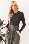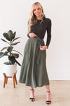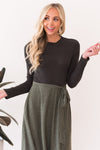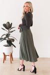 The Jovana is here and we can hardly hold back out excitement! We love the feminine style, ribbed bodice material and long fitted sleeves! Also featuring a modest round neckline, elastic waist with belt tie, pockets and the perfect length modest skirt! Get yours today!