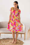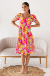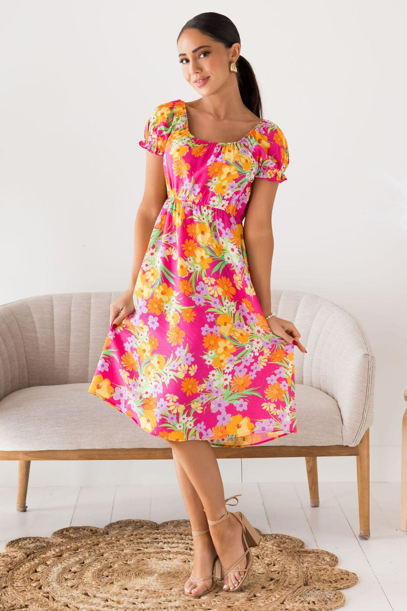 We picture stepping into Summer in the darling Judie and it feeling like a dream! This gorgeous white and bright floral is so breathtaking. Featuring a modest neckline, short puff sleeves, flattering elastic waistline & flowy mid-length skirt! Can we say add to cart now!?