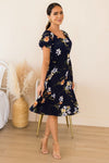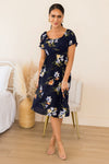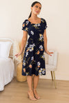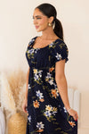 We picture stepping into Summer in the darling Judie and it feeling like a dream! This gorgeous navy floral is so breathtaking. Featuring a modest neckline, short puff sleeves, flattering elastic waistline & flowy mid-length skirt! Can we say add to cart now!?