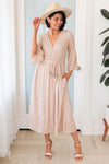 We are pleased to introduce you to the new Judy, it's so flowy and feminine, the perfect addition to everyone's closet! Featuring the ever popular cross-over bodice for our nursing mama's out there. Features 3/4 length bell sleeves, belt tie waist and perfect length skirt. Just say yes to the dress and get it today!