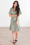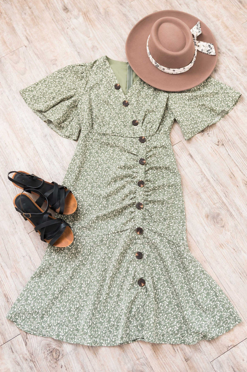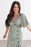 This new beauty is all about the buttons! Featuring the most darling ruching along faux button front detailing, crossover bodice and short flutter sleeves! We are also crushing over the classy ruffle hem! Get yours today!