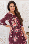 The Kacey is one of our new favorites! This classy feminine mid-length dress is sure to flatter! Featuring a white trim round neckline and flowy double bell half sleeves, elastic waist and pockets! You simply can not go wrong with this beauty!