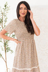 This darling little Kaelia dress is bound to make an impact! We are in love with the shirred bodice, short flutter sleeves and last but not least the perfect length tiered skirt with crochet lace detailing. This dress is also lined and has pockets.