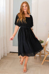 The Kai is a showstopper! This lovely feminine mesh lace dress has stolen out hearts and the show as you can easily see! Features include, gorgeous modest squared neckline, smocked bodice, short flutter sleeves, and the ever so flattering raw edge pleated skirt. Get yours before these gems are gone for good!