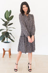 Say hello to this beauty! This beautiful black dress has the most amazing features! Some of those amazing features include the long sleeves, swing dress fit, short ruffle collared neckline, a tiny string tied bow on the neckline, and light pink and green floral print throughout! We can't get enough of this new arrival, get yours before they're gone!