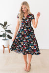 Do you love wrap style dresses? We have got a gorgeous one for you, the Kalisa is a lovely black fall floral faux wrap style dress we simply fell in love with! Featuring short sleeves, elastic tie waist detail, and a faux wrap skirt. Get yours today, these beauties won't last long!