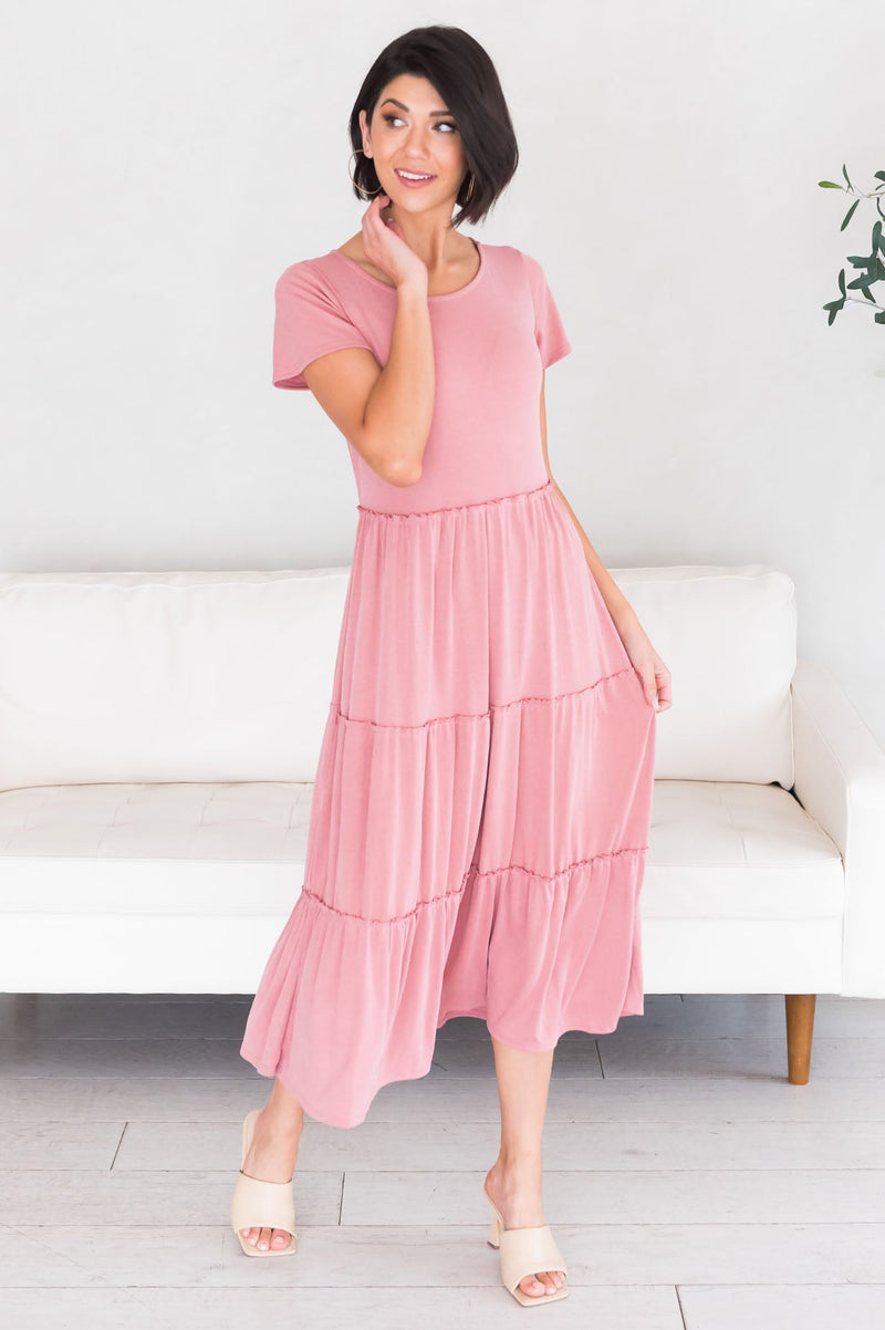 Do you love tiered maxi style dresses? We have got a gorgeous one for you, the Kalisha has a lovely ribbed mauve pink material, we simply fell in love with! Get yours today, these beauties won't last long!