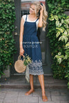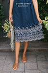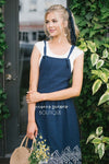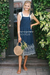 Beyond adorable! This overall dress features an elastic waist and the cutest embroidered detail along the hem of the skirt. Under shirt is sold separately.