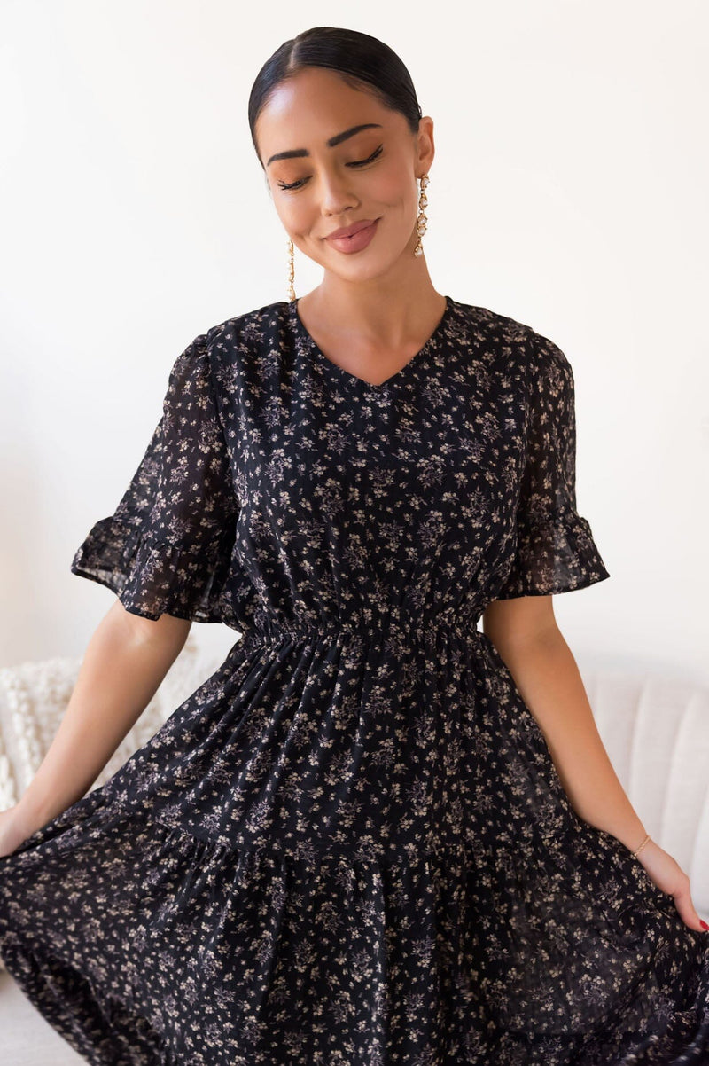 The Kamaria is so feminine and flowy, it is an absolute must have for every wardrobe! This twirl worthy dress features a soft v-neckline, lovely half length bell sleeves, button back closure and flowy tiered skirt. Get yours today!