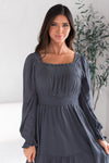 The darling Kamaya is oh so feminine it's an absolute must have for every wardrobe! The cuffed long sleeves, smocked waistline, stunning ruffle square neckline & flowy skirt are the the perfect combination. Get yours today!