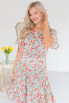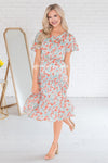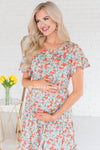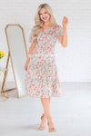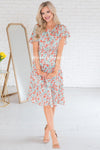 The lovely floral Kameron is here and ready to make all of your Spring and Summer events a breeze! This modest mid-length dress features a round neckline with keyhole button closure, short flutter sleeves, elastic waist and a darling tiered full skirt. Last but definitely not least, is this classy silky satin feel of this fabric! Get yours today, these will go fast!