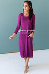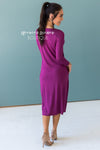 Our absolute new favorite! The Kami is perfection, this gorgeous mid-length dress features a modest round neckline, 3/4 length fitted sleeves, pockets, cozy soft stretch material, & our favorite shift style! These will go quick, get yours before they are gone!