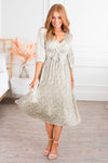 The darling new Karalee dress has all the very best details around! We are in absolute love with the pleated flowy skirt, elastic ruffle empire waist with tie detailing and the 3/4 length puff sleeves. This beauty is fully lined and in the most floral print!