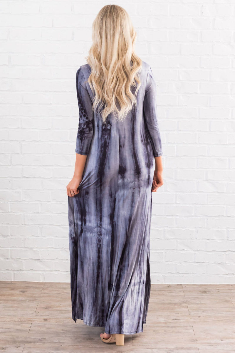 This lovely tshirt maxi is bound to be your next fall go to dress! So comfortable, so stylish, so perfect! Featuring modest round neckline, fitted 3/4 length sleeves and the perfect hemline maxi slits, tie them, leave them as is, either way you are go to do & oh so stylish!