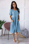 Adorable is an understatement! Our new, modest, Karen Dress is calling your name! This slip-on style dress features puff sleeves, a modest round neckline, empire fit, the most gorgeous unique textured floral fabric and pockets. Get yours before they are gone!