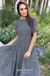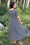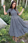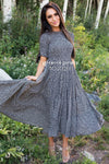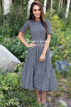 Fall is upon us and this is your perfect dress for it! The lovely shirred bodice with short sleeves is so flattering on everyone! Also featuring an elastic waist and a lovely flowy tiered tea length skirt. Trust us, this beauty is a must have!