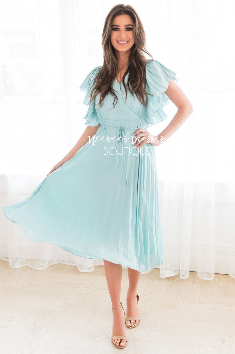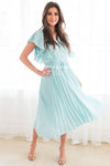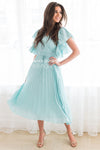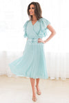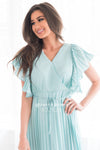 The New Karli is a must have! The lovely feminine pleated detail throughout this gem are to die for! We simply can not get over all the darling details! V-neckline with button closure, flowy pleated sleeves, belt tie and last but not least a full lined pleated skirt.